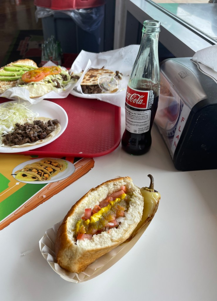 - El Güero Canelo Restaurant – Okay, what’s a Sonoran Hot Dog? It’s the bacon-wrapped hot dog covered in pinto beans, onions, tomatoes and sauces I’ve always dreamed about consuming. It’s a local favorite in Tucson, but El Güero Canelo’s was my favorite. Don’t sleep on their Tortas either.